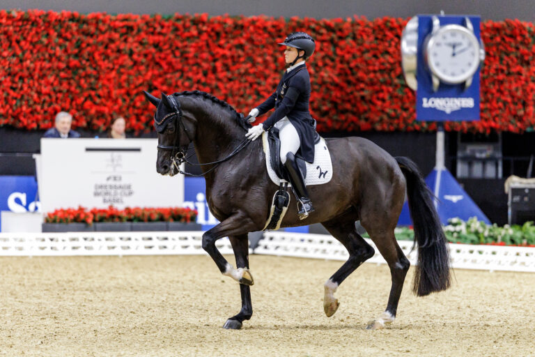 Donation PS v. Debutant PS – Totilas – Dante Weltino ist ein Oldenburger, der in der Lewitz zur Welt kam und Siegerhengst der Mecklenburger Körung 2024 wurde. Seine Großmutter ist die wunderschöne Rappstute Dante’s Pearl, die sich dieses Jahr mit Charlott-Maria Schürmann für das Louisdor-Preis Finale qualifizieren konnte. Der Fuchs erhielt eine 9,5 im Interieur, eine 9 für Charakter und Temperament und eine 10 für seine Leistungsbereitschaft. Den Trab bewerteten die Richter mit 8,0, den Galopp 9,5 und den Schritt mit 8,5. Rittigkeit und Gesamteindruck sah die Bewertungskommission bei 8,5, der Fremdreiter vergab eine 9.