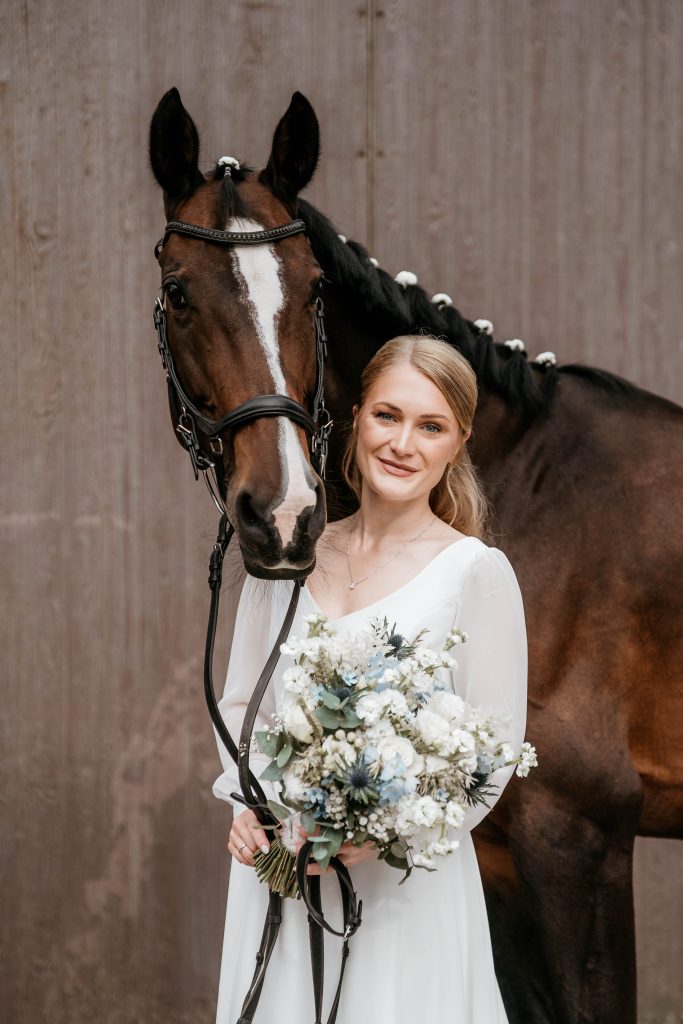 An ihrer Seite stets mit dabei: Cedric van der Maat, der seine Leidenschaft für Pferde ebenfalls lebt – auch wenn er heute nicht mehr aktiv im Sattel sitzt. Als Vorstandsmitglied des RuFV „Graf von Schmettow“ Eversaelengagiert er sich mit Herzblut für den Verein und den Reitsport in der Region. Vor der Kirche erwartete das frisch vermählte Paar nicht nur ein Spalier glücklicher Gäste, sondern auch eine Abordnung ihres Reitervereins, die Lena und Cedric herzlich in Empfang nahm.