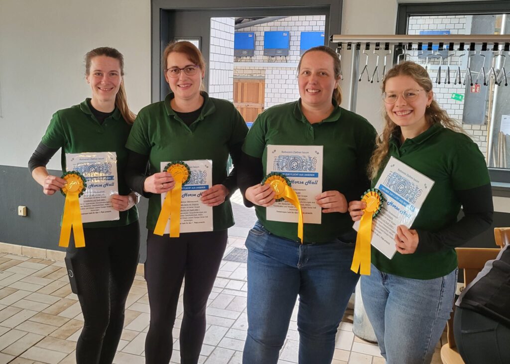 So wurde aus dem Wettbewerb das, was er auch werden sollte, ein echtes Gemeinschaftserlebnis. Am Ende schafften es alle Teams, die Escape Horse Hall erfolgreich zu verlassen und waren sich einig: Dieses Format hat Wiederholungspotenzial. Bei der anschließenden Siegerehrung konnte Jutta Knopp die schnellsten Teams ehren. Den ersten Platz sicherte sich das Team eins „Schleifenfrei und Spaß dabei“. Auf Rang zwei folgte Team zwei „Schleifenfrei und Spaß dabei“, während der „NTCC Non Talented Chaos Club“ den dritten Platz belegte. Dahinter reihten sich die „ESCape Pony Crew“ auf Platz vier, „Apparaza“ auf Rang fünf sowie „Seelenritt“ auf Platz sechs ein. Die Begeisterung bei Teilnehmern und Organisatoren war groß. „Im kommenden Jahr soll es eine zweite Auflage der Escape Horse Hall geben. Interessenten können sich schon jetzt vormerken lassen, denn die Startplätze sind begrenzt“, so Knopp weiter. Mit der Premiere der Escape Horse Hall hat der Reiterverein Ziethen Issum gezeigt, dass Kreativität und Teamgeist neue Wege im Vereinsleben eröffnen können und dass Reitsport manchmal auch ganz anders funktionieren darf. Somit kann der Verein auf eine erfolgreiche und spannende Veranstaltung zurückblicken.