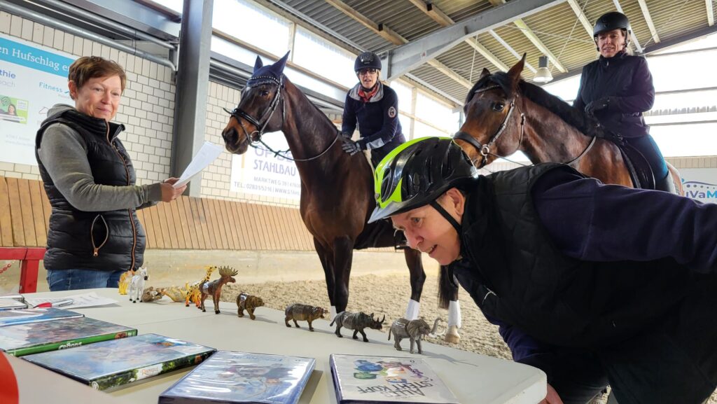Spannende, lustige und manchmal auch knifflige Aufgaben sorgten für beste Unterhaltung. Und das nicht nur bei den Teilnehmern, sondern auch bei den zahlreichen Zuschauern. In jedem Raum standen sogenannte „Torwächter“ bereit, die bei Bedarf einen hilfreichen Tipp geben konnten. Allerdings hatte dieser seinen Preis: Wer Hilfe wollte, musste dafür wertvolle Zeit opfern. Das Besondere an dem Konzept: Starten konnten Teams mit mindestens zwei und maximal vier Reitern. Auf Wunsch konnte auch eine Kombination mit Begleitpersonen zu Fuß gebildet werden. „Damit wollte der Verein bewusst auch jene einbeziehen, die sich ein Pferd teilen oder als Reitbeteiligung aktiv sind. Ebenso konnten Partner, Eltern oder Freunde, die sonst häufig als Unterstützer am Rand eines Turniers stehen, aktiv Teil des Teams werden“, erklärt Jutta Knopp, die Vorsitzende des gastgebenden Vereins.