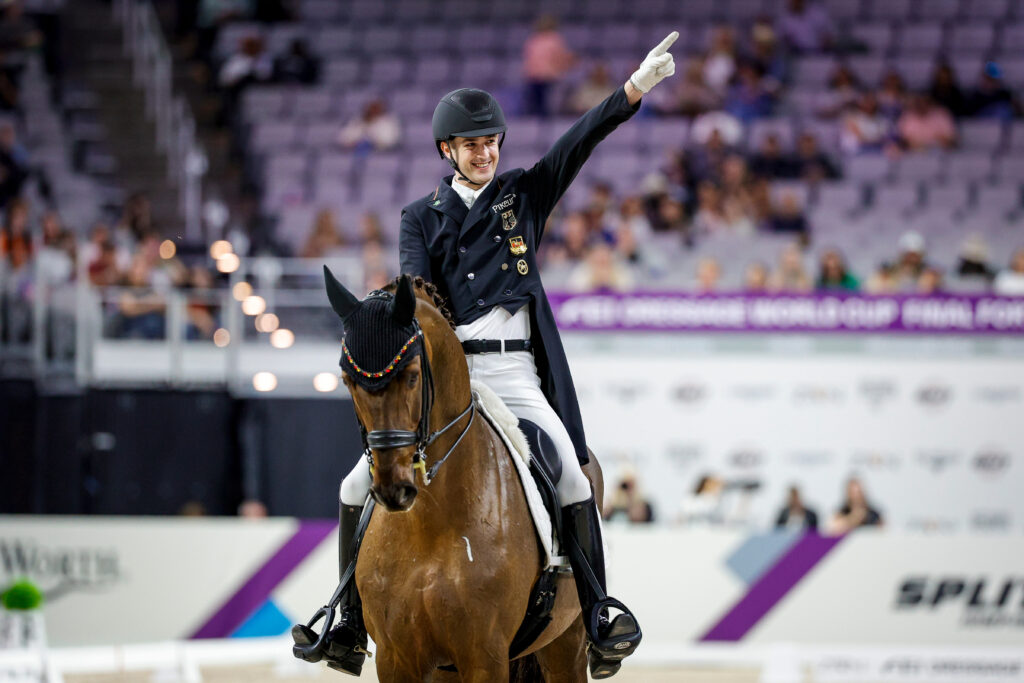 Aus deutscher Sicht überzeugte vor allem Raphael Netz mit DSP Dieudonné. Nach einem noch etwas verhaltenen Grand Prix gelang dem Paar in der Kür eine deutliche Steigerung. Der Rappe wirkte konzentriert, losgelassen und deutlich sicherer im Ablauf. Besonders in der Trabtour konnte Netz die Stärken seines Pferdes ausspielen, während auch die Galopparbeit mit Serienwechseln und Pirouetten auf hohem Niveau gelang. Mit 79,245 Prozent verpasste das Paar zwar knapp die 80-Prozent-Marke, belegte aber einen sehr guten fünften Platz. Es war Netz’ zweiter Start in einem Weltcup-Finale – und der erste mit Dieudonné, der sich dabei auf der großen Bühne hervorragend präsentierte.