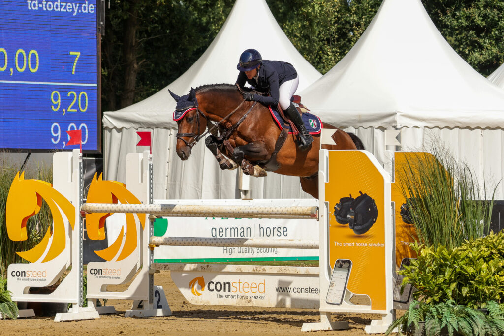 Auch Nachwuchspferde zeigten ihr Potenzial. So konnte Alegra JuHU (v. Avalon – Caproni – Glorious), gezogen von Ute Haberer, unter Timo Heiniger beim CSIYH in Busto Arsizio mehrere Platzierungen und Siege in Prüfungen für siebenjährige Pferde über 1,25 Meter erreichen.