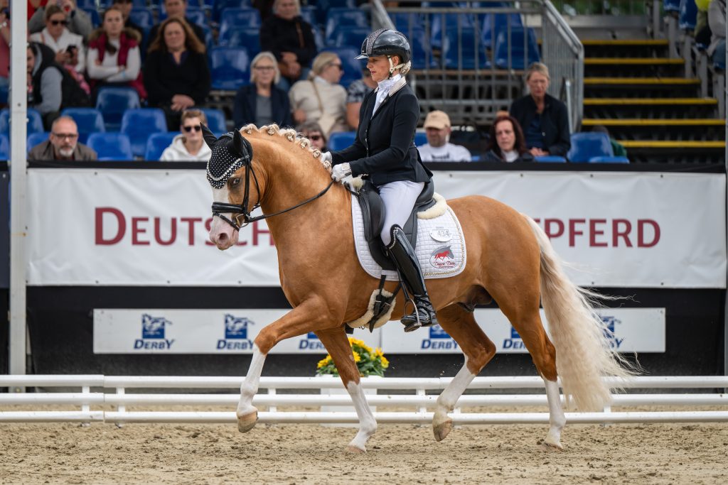 Der rheinische Zuchtverband feierte in dieser Prüfung einen Doppelsieg. An die Spitze des Feldes setzte sich Next Temptation. Der Hengst aus der Zucht von Wim Egelmeers wurde von Danica Duen präsentiert. Mit einer glatten 9,0 setzte der schicke Ponyhengst bereits in der Finalqualifikation ein echtes Ausrufezeichen. FS Nestea, ein väterlicher Halbbruder des Siegers der bei Ute Küppers zur Welt kam, platzierte sich mit einer 8,5 an zweiter Stelle. Sophie Dammeyer war hier für die reiterliche Vorstellung verantwortlich. An dritter Stelle platzierte sich mit einer 8,4 der Westfale Steverheides No Limits unter Hanna Richter. Er ist ein Sohn des FS Numero Uno. Jacqueline Baartz trabte mit dem im Rheinland von Carolyne Liebrecht gezogenen Golden Hunter LR zu Rang vier. Alena Kempkens und Assenmachers Commander Schultze platzierten sich mit einer 8,1 an sechster Stelle, genau wie der im Rheinland von Jörg Zahn geborene Date the Right unter Mareike Mimberg-Hess.