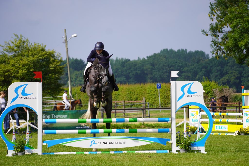 Die unzähligen Arbeitsstunden, die in die Vorbereitung des Reitgeländes investiert wurden, zahlten sich aus: Am 26.07.2025 erwartete die Teilnehmer und Zuschauer ein ansprechend hergerichteter Turnierplatz mit perfekt präparierten Prüfungs- und Abreiteplätzen. Den Auftakt machten die jungen Pferde. Den Sieg in der ersten Prüfung des Tages, einer Dressurpferdeprüfung der Klasse A, sicherte sich Anja Langenberg vom RV Graf Haeseler Sonsbeck-Labbeck im Sattel von Zabalou mit einer Wertnote von 8,0. In der Gewöhnungsspringprüfung blieben 10 von 14 gestarteten Paaren fehlerfrei und konnten sich über Goldschleife und eine Tüte Pferdeleckerlies freuen. Durch den Sieg in der Springpferdeprüfung Klasse A** erhält Luisa Hendricks vom RFV von Driesen-Asperden-Kessel auf Cailynn van het Keizershof die volle Punktzahl für die Wertung des Rasenchampionats. Den Sieg in der Punktespringprüfung der Klasse A sicherte sich überlegen der älteste Turnierteilnehmer, Reitsportlegende Heinz Eberhard vom RV Eintracht Veen im Sattel von Feodora, da er die maximale Punktzahl in der schnellsten Zeit erreichte. In der Zweiphasenspringprüfung Klasse A**, Wertungsprüfung zum Ü-40-Cup, ließ Hans Herzig vom Pony-RFC Krefeld auf seinem langjährigen Sportpartner Jalisco vd Voorde der Konkurrenz keine Chance: Mit seinem Nullfehlerritt war er vier Sekunden schneller als der Zweitplatzierte Armin Scheuvens (RFV Heinsberg) auf Enjoy. Ebenfalls deutlich siegte Fenja Klumpe vom RV Seydlitz Kalkar im Sattel von Cosmo Blue AT in der Stilspringprüfung Klasse A** mit einer Wertnote von 8,2 und wurde zusätzlich mit 100 Punkten für die Rasenchampionatswertung belohnt.