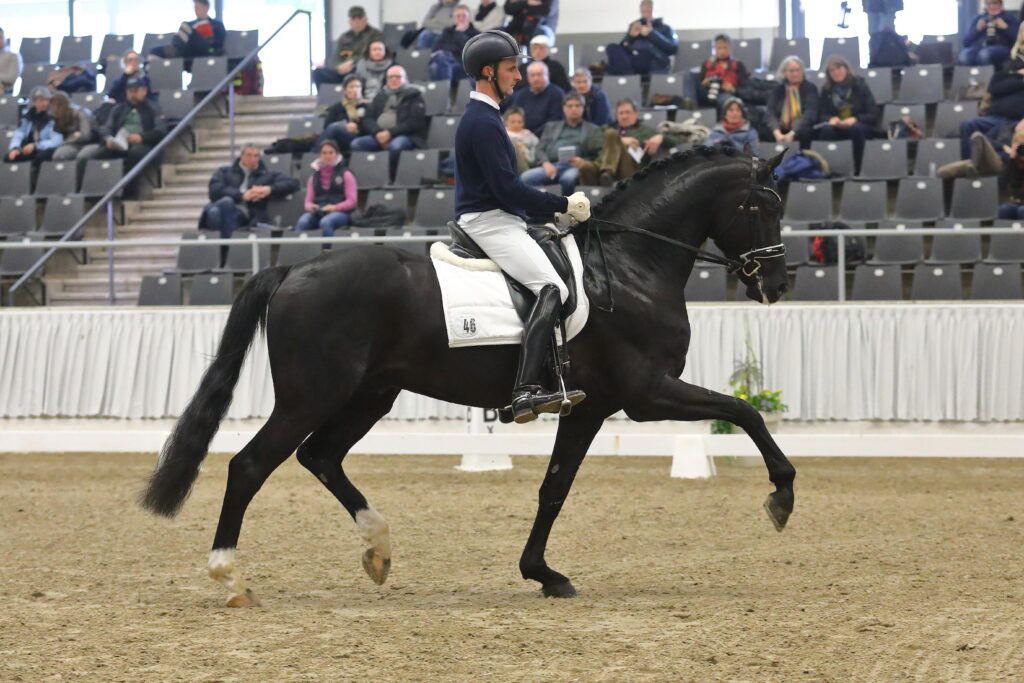 Der Hengst Secret bei seiner Leistungsprüfung unter Philipp Hess als Fremdreiter. Foto: Bischoff