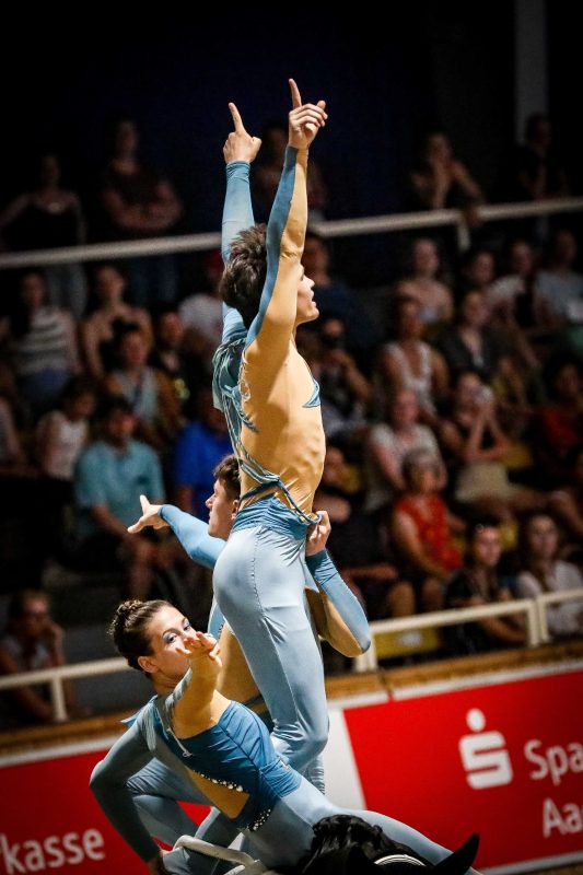Auch bei den Deutschen Meisterschaften in Verden ging kein Weg an den Voltigierern aus Köln vorbei. Das Team Norka des VV Köln-Dünnwald ließ der Konkurrenz einmal mehr keine Chance und sicherte sich die Goldmedaille auf dem Rücken von Calidor und an der Longe von Ines Nawroth. Und auch im Einzelvoltigieren waren die Kölner erneut stark vertreten. Bela Lehnen ist in dieser Saison bereits erfolgsverwöhnt. Dass er sich darauf nicht ausruht hat er auch in Verden bewiesen und sicherte sich gegen starke Konkurrenz seinen nächsten Titel bei den Herren. Zu Rang vier turnte hier Thomas Brüsewitz, gefolgt von Leon Hüsgen auf Rang sechs. Bei den Damen konnte Sema Hornbeg ebenfalls Platz sechs in der Gesamtwertung erreichen.